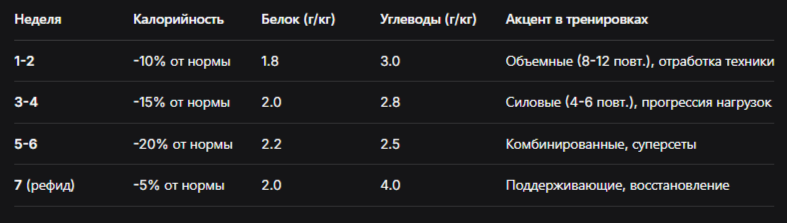 Как специалист в области спортивной диетологии, я рекомендую многоуровневую стратегию питания, направленную на максимальное сохранение мышечной массы при дефиците калорий. Приоритет белка — фундаментальный принцип: потребление 1.8-2.5 г белка на кг целевого веса не только обеспечивает строительный материал для мышц, но и увеличивает термогенез (до 20-30% от калорийности белка) и насыщение.