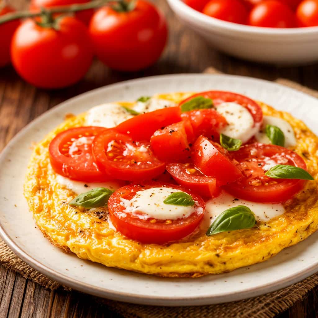 Омлет с томатами и моцареллой — быстрый белковый завтрак