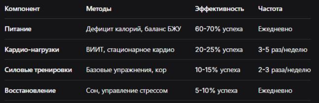 Локальное жиросжигание невозможно без общего снижения процента жира в организме. Для достижения оптимальных результатов необходим комплексный подход и индивидуальное составление плана питания.