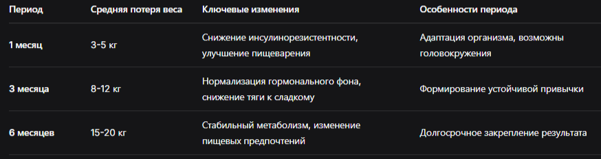 Таблица: Результаты интервального голодания 16/8