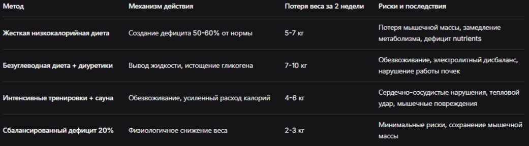 Таблица: Сравнительный анализ методов экстренного похудения