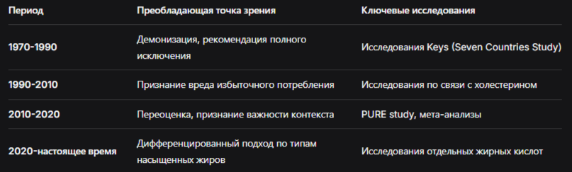 Таблица: Изменение научной парадигмы о насыщенных жирах