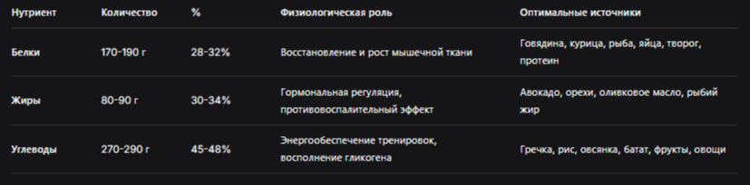 Мы понимаем, что самостоятельный расчет оптимального нутриентного состава для высоких нагрузок требует экспертных знаний в области спортивной нутрициологии. Неправильное распределение макронутриентов, ошибки в timing приемов пищи относительно тренировок, недостаток микроэлементов для поддержки работы всех систем организма — все это может привести к неполному восстановлению, перетренированности и отсутствию прогресса. Именно поэтому мы предлагаем индивидуальное составление плана питания — профессиональное решение, которое учитывает ваш тренировочный план, энергозатраты, метаболические особенности и спортивные цели для достижения максимальных результатов.