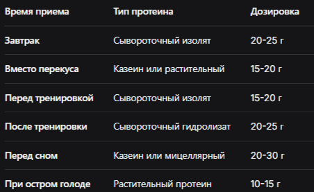 Для максимальной эффективности жиросжигания важно не только количество, но и время приема протеина. Мы разработали оптимальные схемы для разных scenarios похудения.